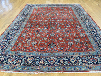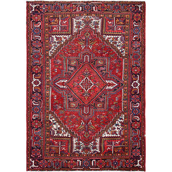 7'8"X11' Carmine Red Vintage Zoroastrian Heris Pure Wool Hand Knotted Rug