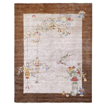 7'10"X10'1" White Chinese Art Deco Inspire Peshawar Hand Knotted Wool Rug