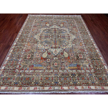 7'10"X9'6" Brown 14Th Century Mamluk Dynasty Design Wool Hand Knotted Rug