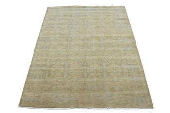 6'X9'1" Pink Afghan Angora Oushak Leaf Design Hand Knotted Pure Wool Rug