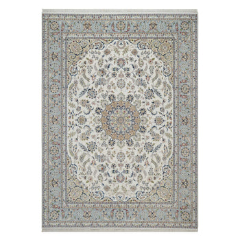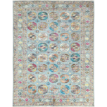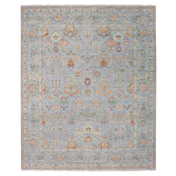 8'8"X12' Blue White Wash Peshawar Leaf Design Hand Knotted Pure Wool Rug
