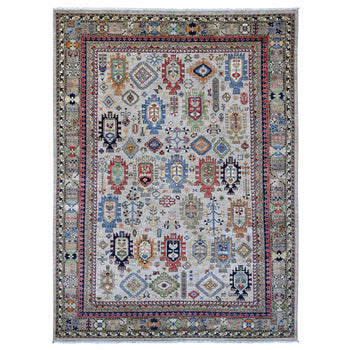 8'X10' Atlantic Blue Super Kazak Tribal Medallions Wool Hand Knotted Rug