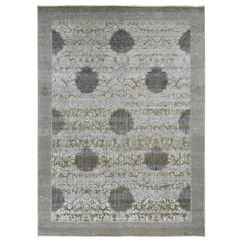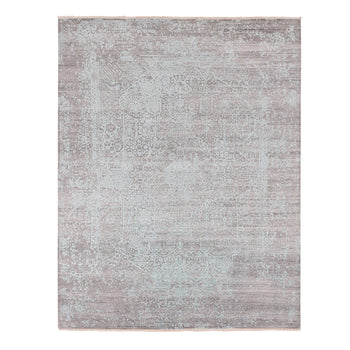 8'X10' Misty Gray Jewelry Design Wool With Textured Silk Hand Knotted Rug