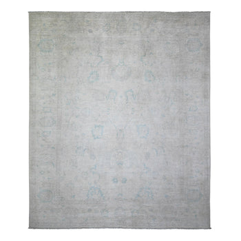 8'X9'10" Cloud Gray White Wash Peshawar Hand Knotted 100% Wool Oriental Rug