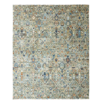8'X8' Sky Blue Shah Abbas Flower Design Pure Wool Hand Knotted Square Rug