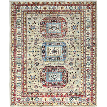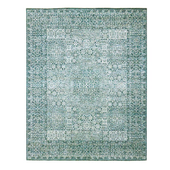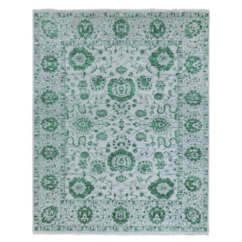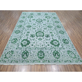 8'X10'1" White & Green Zoroastrian Influence Design Wool Hand Knotted Rug