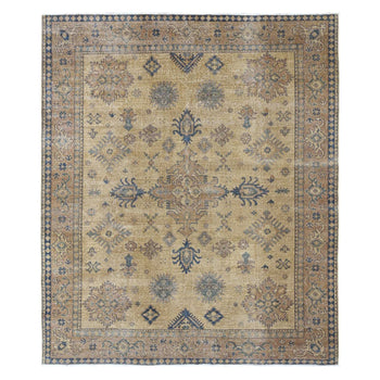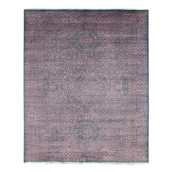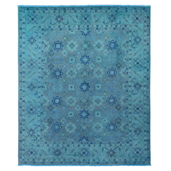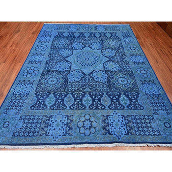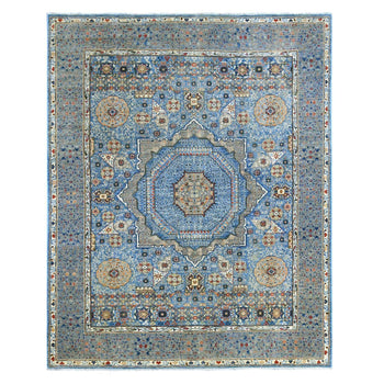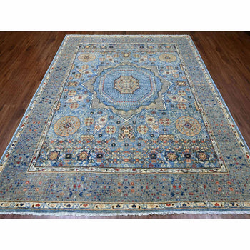 8'X9'6" Blue Peshawar Mamluk Design Distressed 100% Wool Hand Knotted Rug