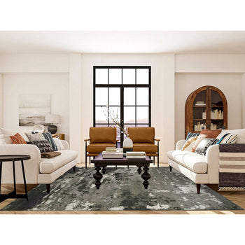 8'X9'10" Black Hand Knotted Kishoon Revival 300 Kpsi Rug New Zealand Wool