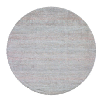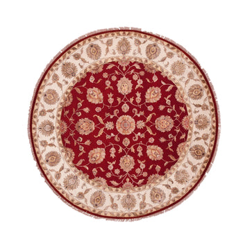 8'X8' Burgundy Red Wool And Silk Hand Knotted Rajasthan Design Round Rug