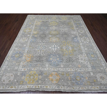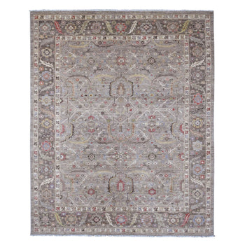 8'X9'7" Gray Afghan Angora Oushak Leaf Pattern Hand Knotted Pure Wool Rug