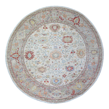 8'X8' Pearl White Hand Knotted Afghan Angora Oushak Pure Wool Square Rug