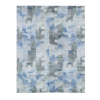 8'X9'10" Gray, Abstract Design, Hand Knotted, Wool And Silk, Oriental Rug