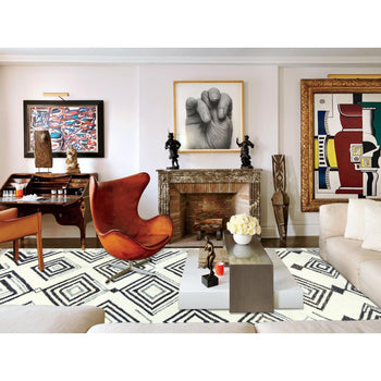 8'X9'10" Ivory Thick & Plush Moroccan Contemporary Wool Hand Knotted Rug