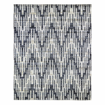 8'X10'3" Domino Black Modern Wool And Silk Striae Design Hand Knotted Rug