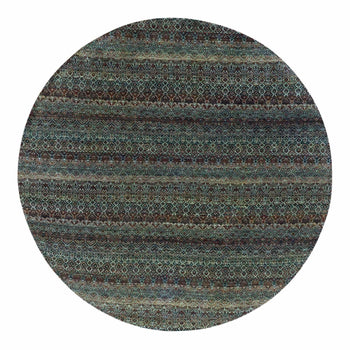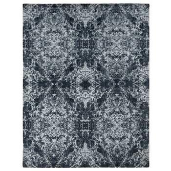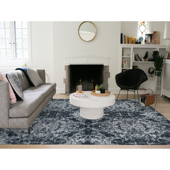 9'2"X11'9" Denim Blue Maze Design Berber Influence Hand Knotted Wool Rug