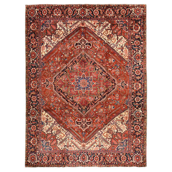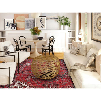 9'7"X12'2" Red Vintage Zoroastrian Heris 100% Wool Hand Knotted Clean Rug