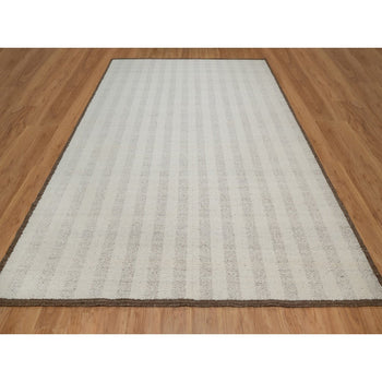 9'3"X12' Ivory Line Design Flat Weave Undyed Natural Wool Hand Woven Rug