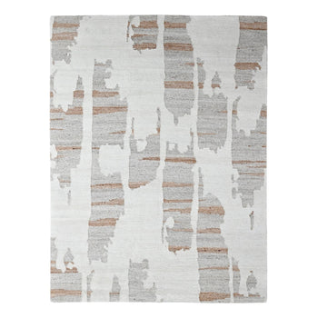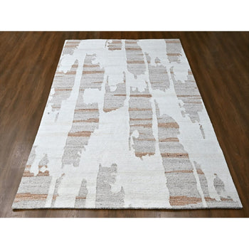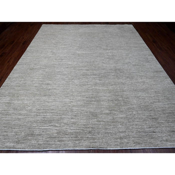 9'2"X12'6" Bone Brown Modern Grass Design Hand Knotted Wool And Silk Rug