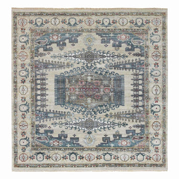 9'5"X12'1" Blue Antique Caucasian Design Revival Hand Knotted Pure Wool Rug