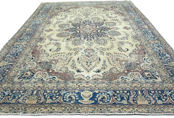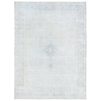 9'7"X12'10"Ivory Hand Knotted Old Farsian Karman Wool Distressed Look Rug