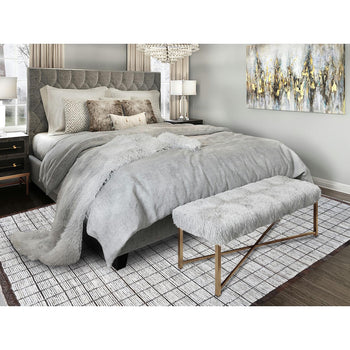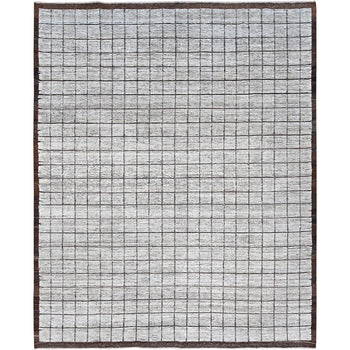 9'7"X11'8" White Moroccan Weave With Grid Design All Wool Hand Knotted Rug