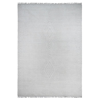 9'6"X11'8" White Moroccan Weave With Box Design 100% Wool Hand Knotted Rug