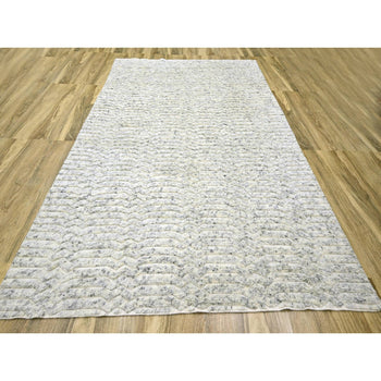 9'4"X11'10" White Textured Pile Moroccan Weave Pure Wool Hand Knotted Rug