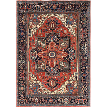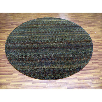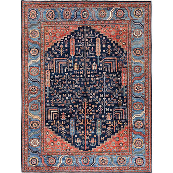 9'2"X12'8" Midnight Blue Seeripe Heris Hand Knotted High Mountain Wool Rug