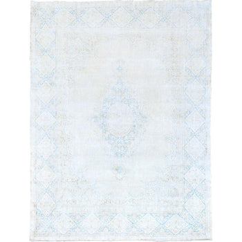 9'6"X12'9" Ivory Hand Knotted Wool Shabby Chic Distressed Old Farsian Rug