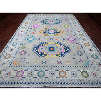 9'2"X11'10" Denim Blue Caucasian Design Super Kazak Wool Hand Knotted Rug