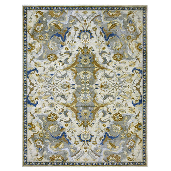 9'2"X12'1" Ivory Zoroastrian Ispahan Inspired Hand Knotted 100% Wool Rug