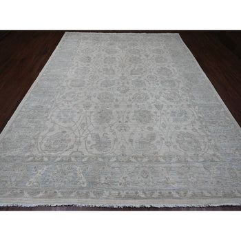 9'2"X11'10" Oyster Gray Afghan Oushak Leaf Design All Wool Hand Knotted Rug