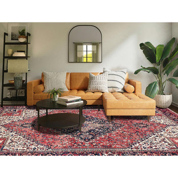 9'7"X12'6" Dutch Tulip Red Semi Antique Hand Knotted Heris Shiny Wool Rug