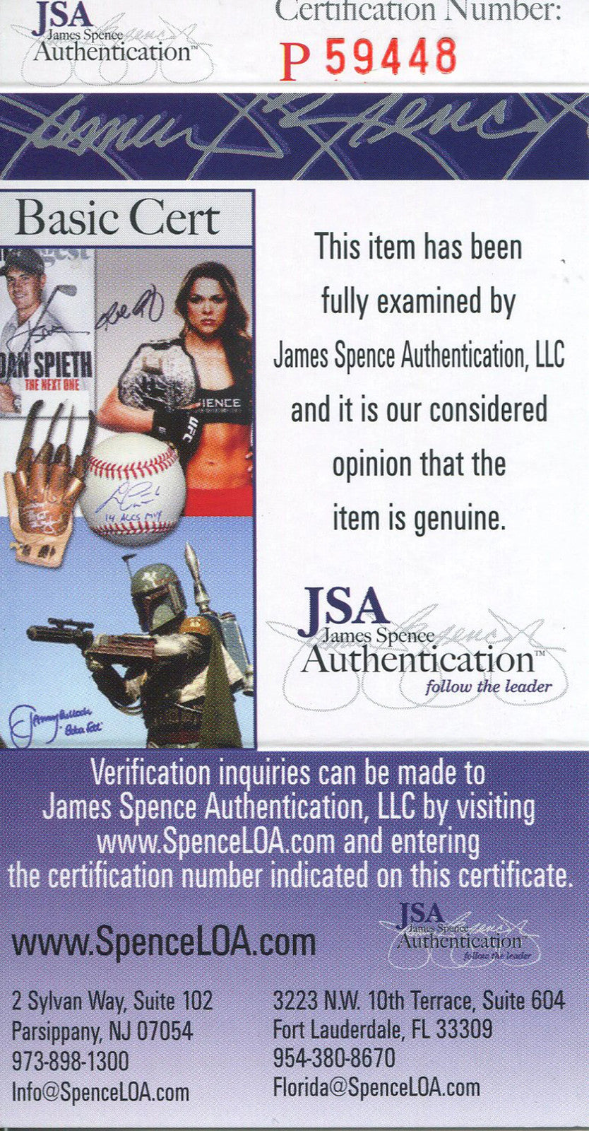 Item is authenticated by James Spence, Cert #P59448.