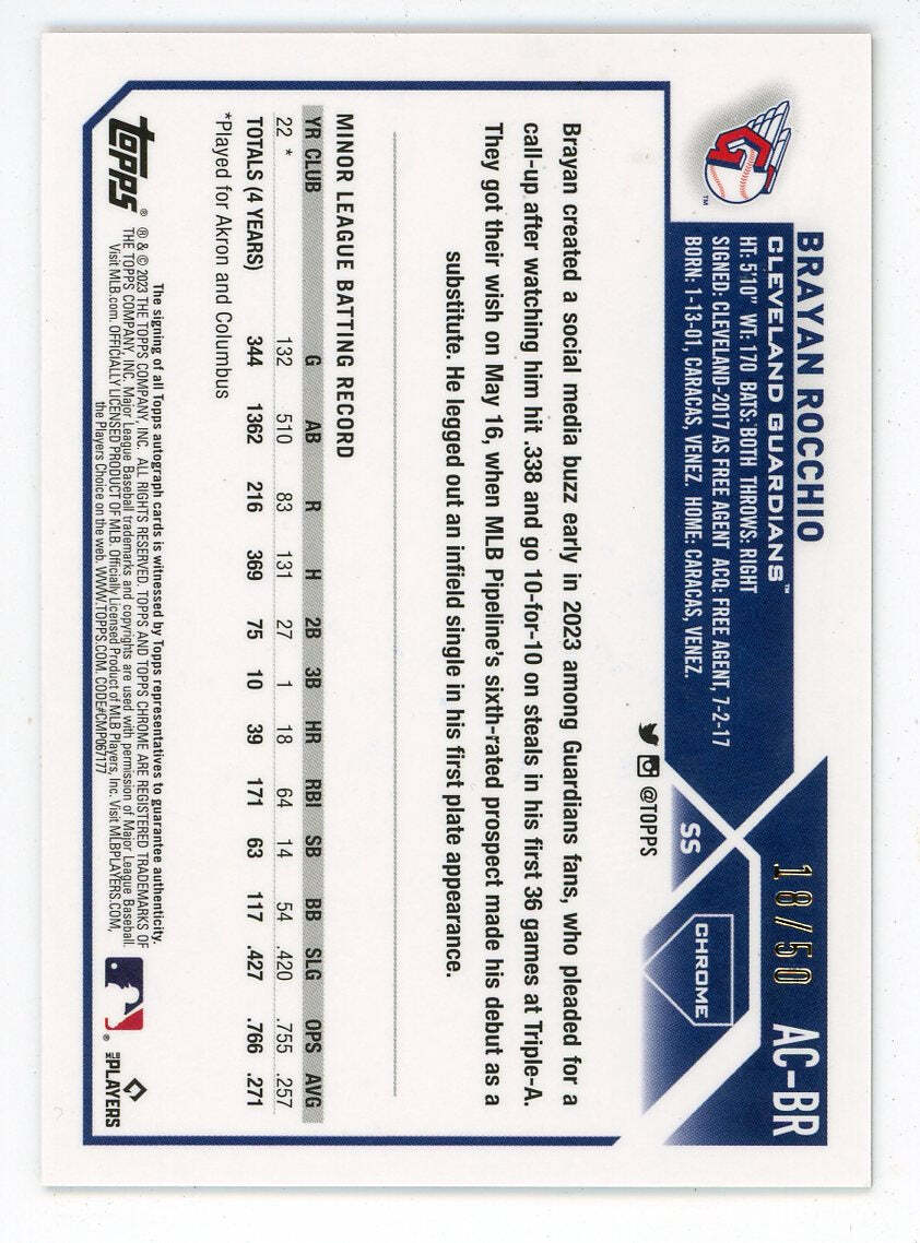 Brayan Rocchio 2023 Topps Chrome Autographed Card #Ac-Br