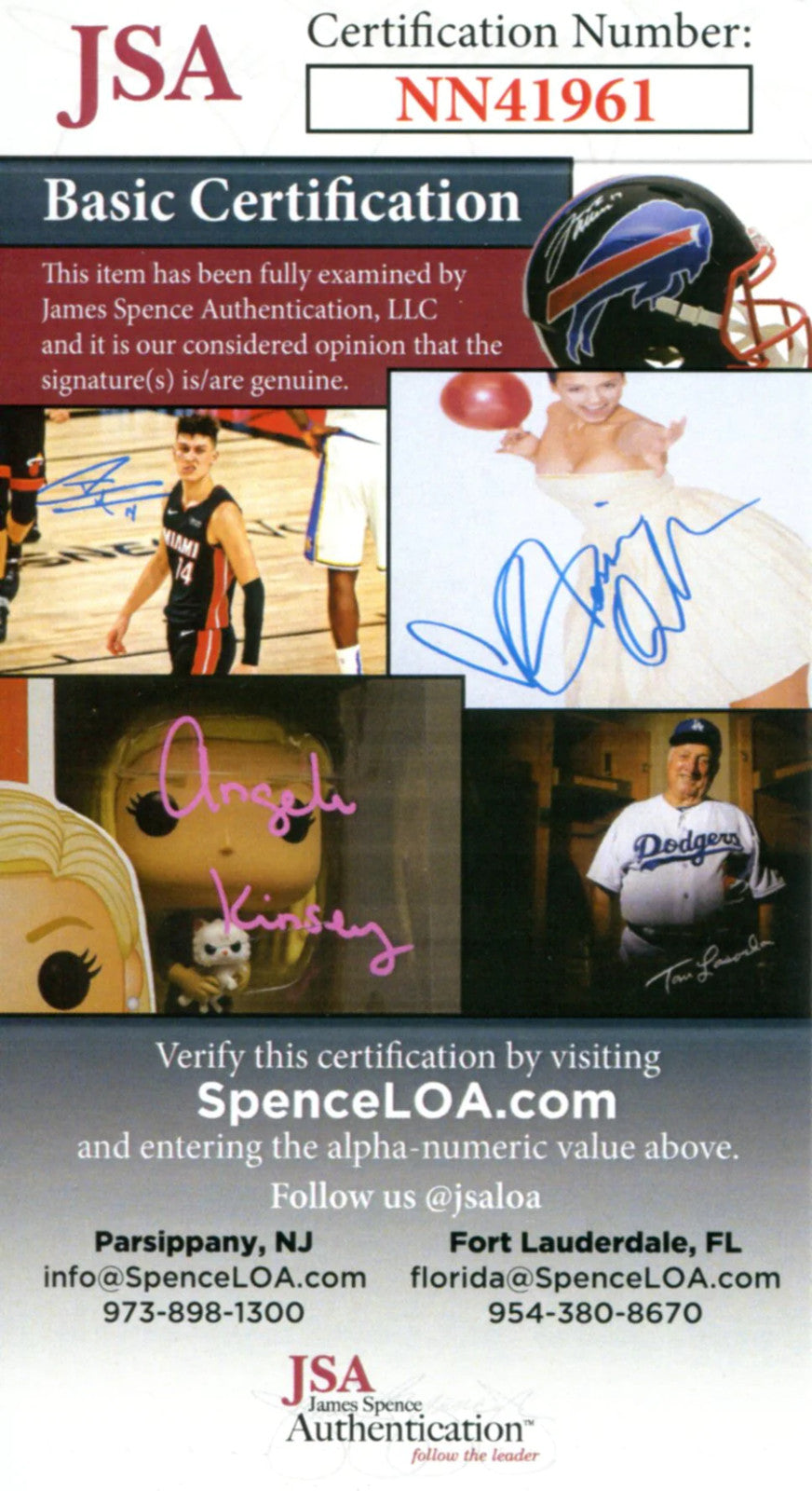 Authenticity is provided by James Spence authentication and will be accompanied with a COA from JSA, Cert #NN41961.