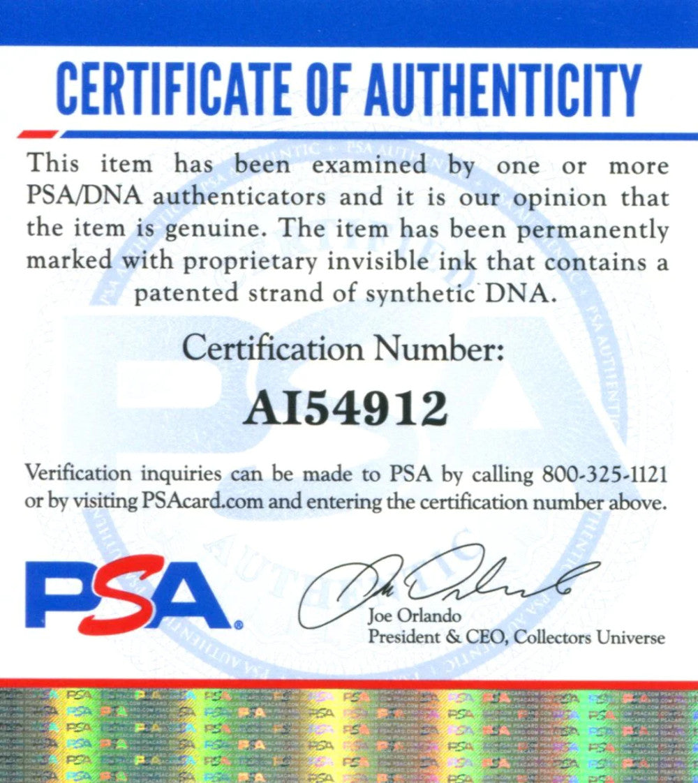 Authenticity is provided by PSA and will be accompanied with a PSA COA, Cert #AI54912.