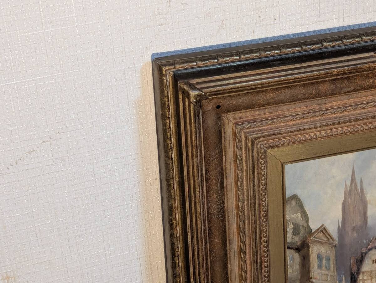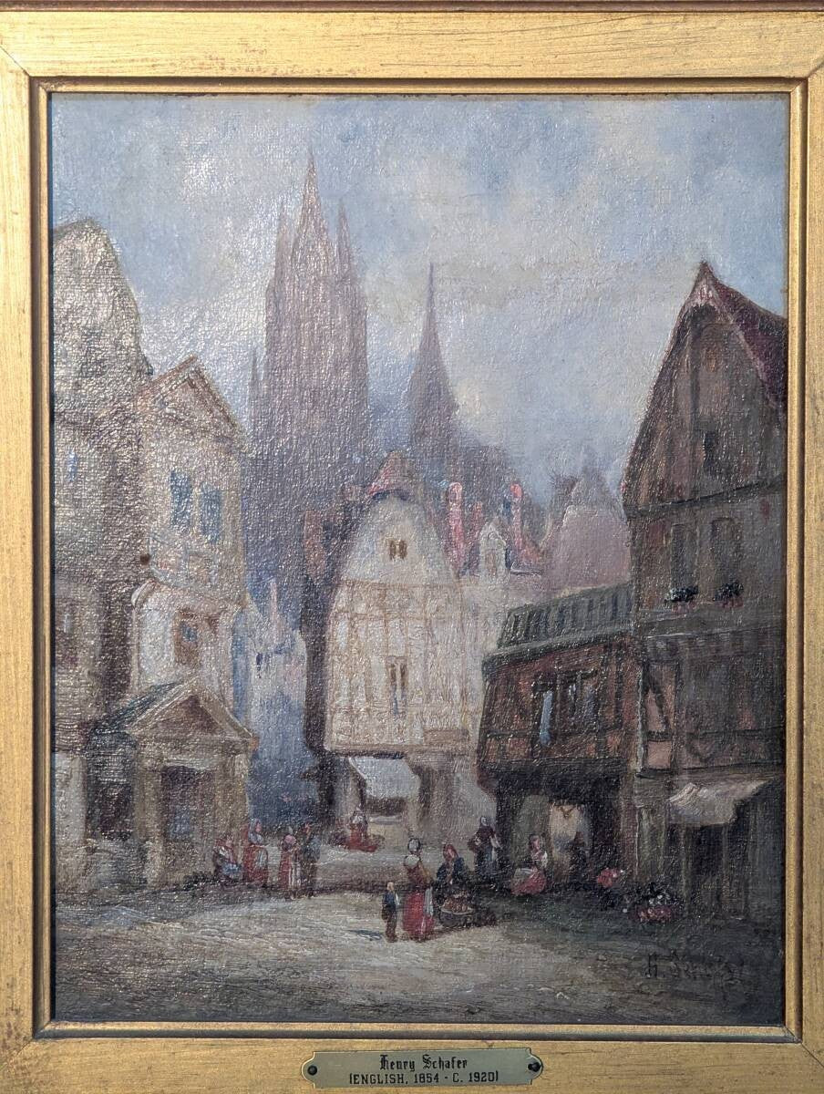 Henry Schafer (18331916) Original Oil Painting Old European Town Scene Gothic