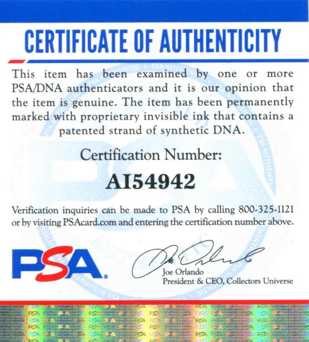 Authenticity is provided by PSA and will be accompanied with a COA from PSA, Cert #AI54942.