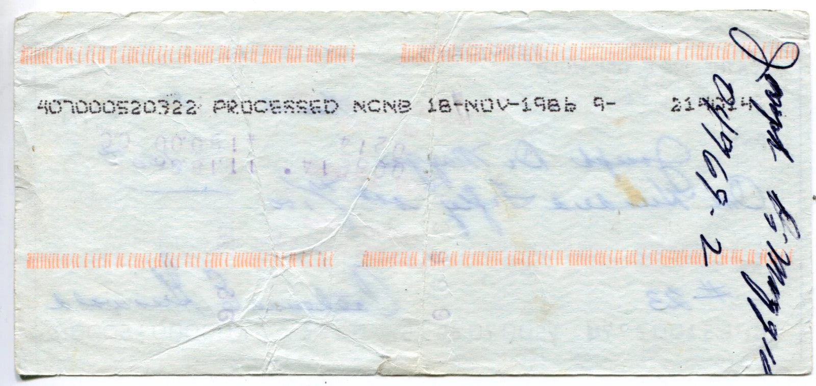 Signed in black pen across the back of the check