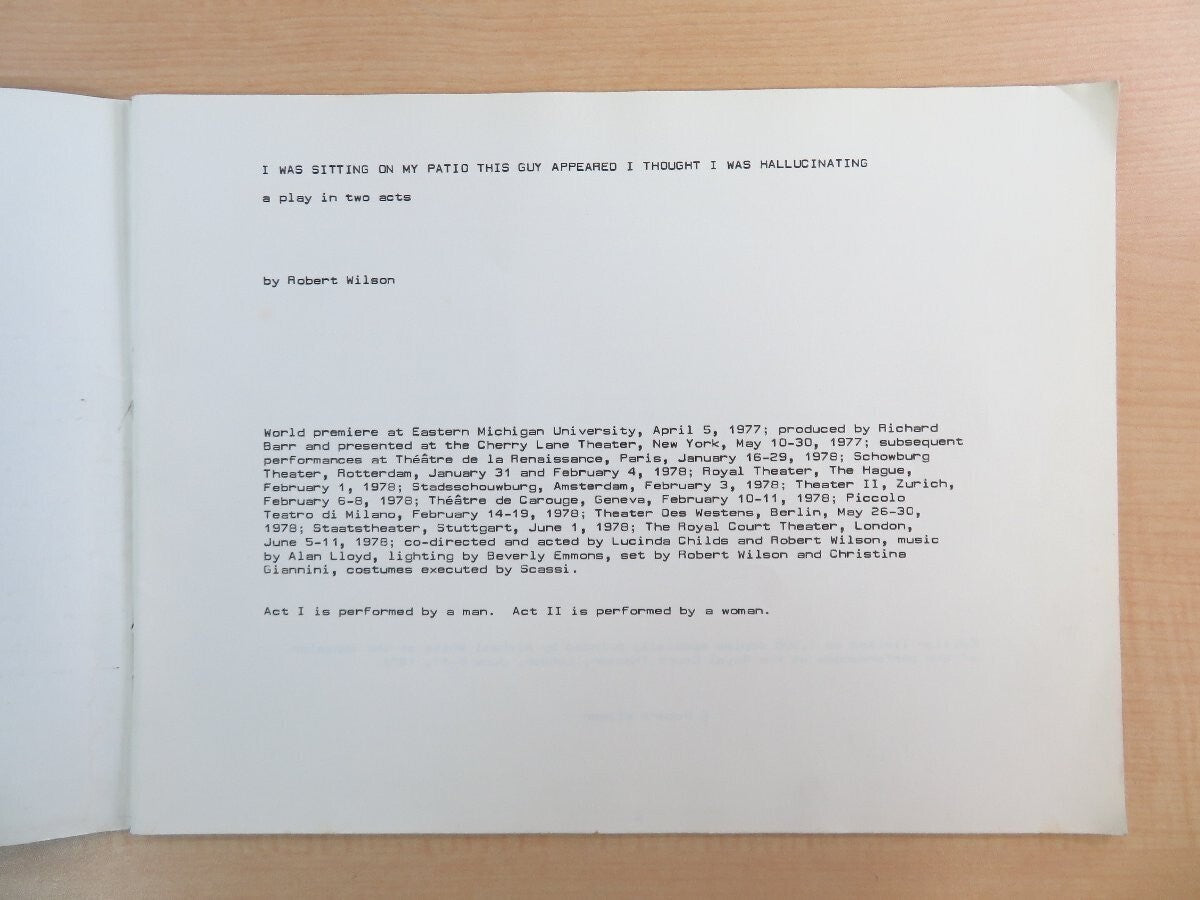 Robert Wilson Lucinda Childs I Was Sitting On My Patio 1St Edition 1978 London