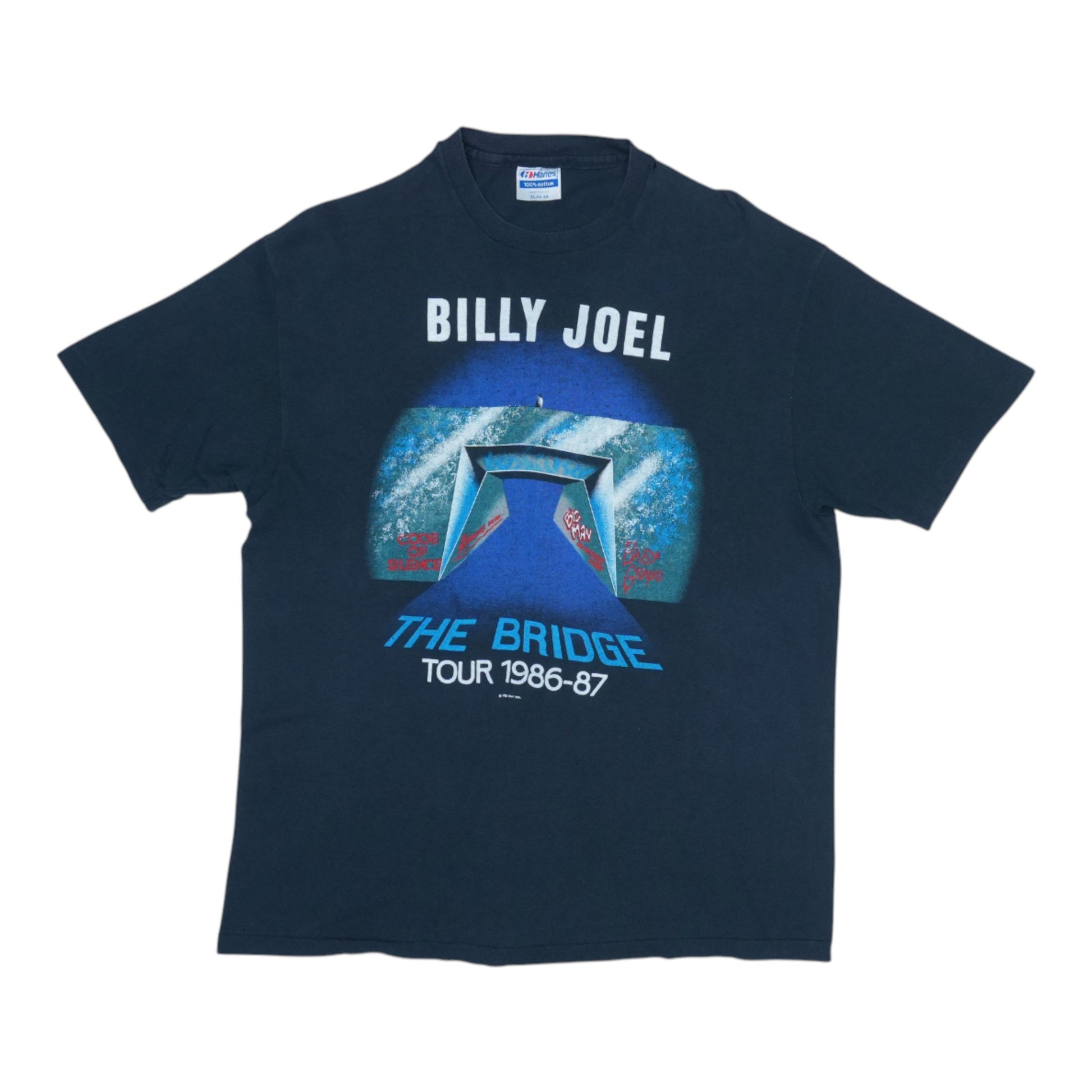 Original vintage 1986 Billy Joel The Bridge Tour Shirt. This is a true vintage shirt, not a modern reproduction. Sizes vary so please use measurements for best idea on fit. Front and back graphics. Shirt is in good condition, hole on front, no stains. This shirt will arrive washed and ready to wear.