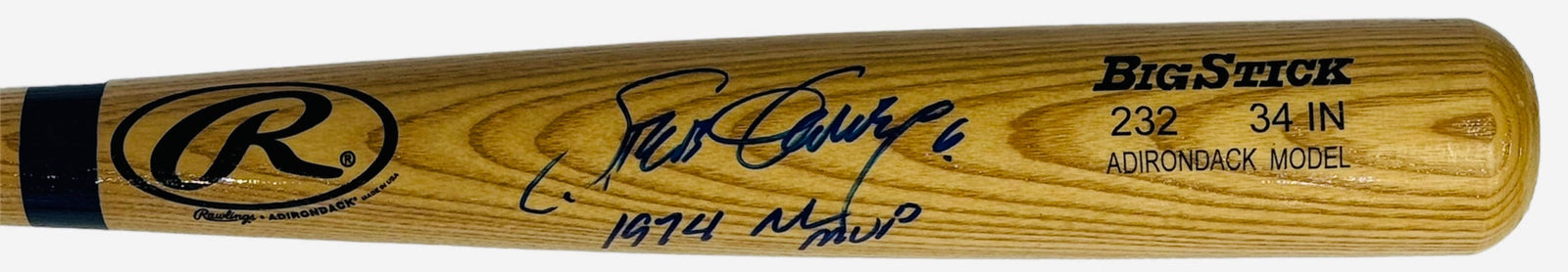 Signed in blue sharpie across the barrel of the bat with inscription "1974 NL MVP"