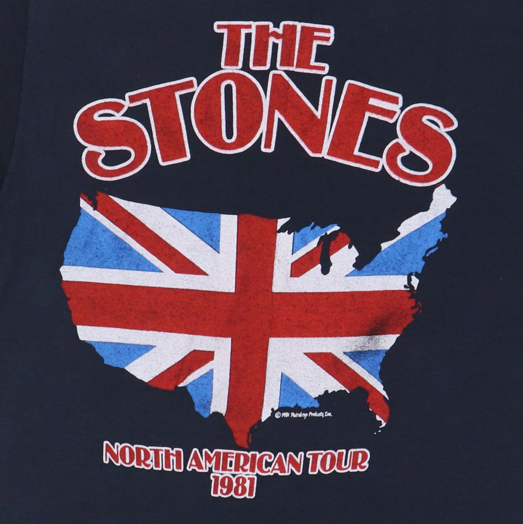 Original vintage 1981 Rolling Stones North America Tour Shirt. This is a true vintage shirt, not a modern reproduction. Sizes vary so please use measurements for best idea on fit. Front and back graphics. Shirt is in excellent condition, hole on sleeve, no stains. This shirt will arrive washed and ready to wear.