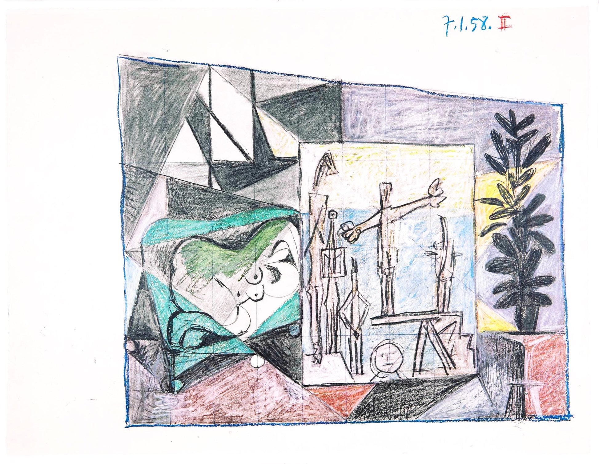Notes: From the folio, Pablo Picasso, La Chute d'Icare, Dcoration du Foyer des Dlgus Palais de l'UNESCO Paris, Suite d'tudes prparatoires en noir et en couleurs ralises du 6 Dcembre 1957 au 29 Janvier 1958, 1972.