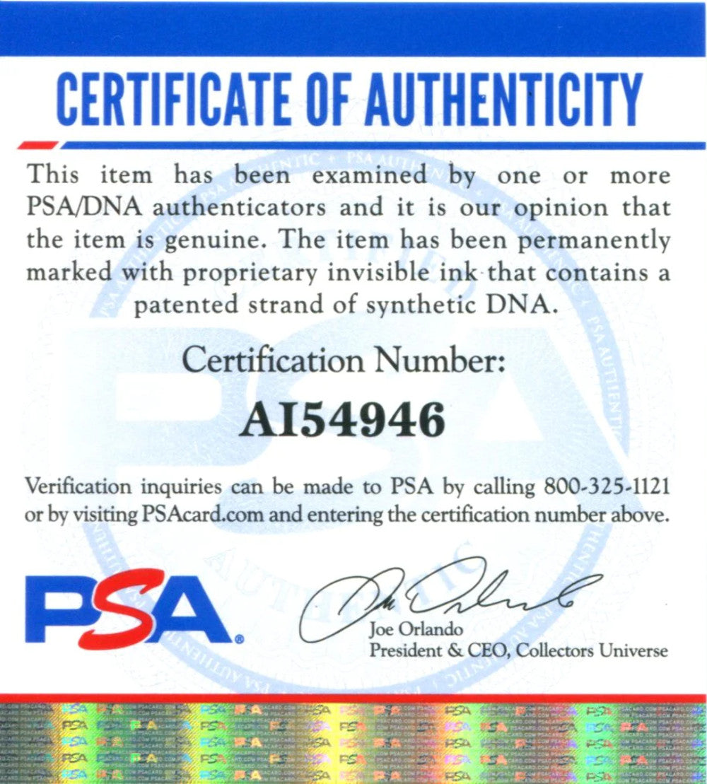 Authenticity is provided by PSA and will be accompanied with a COA from PSA, Cert #AI54946.