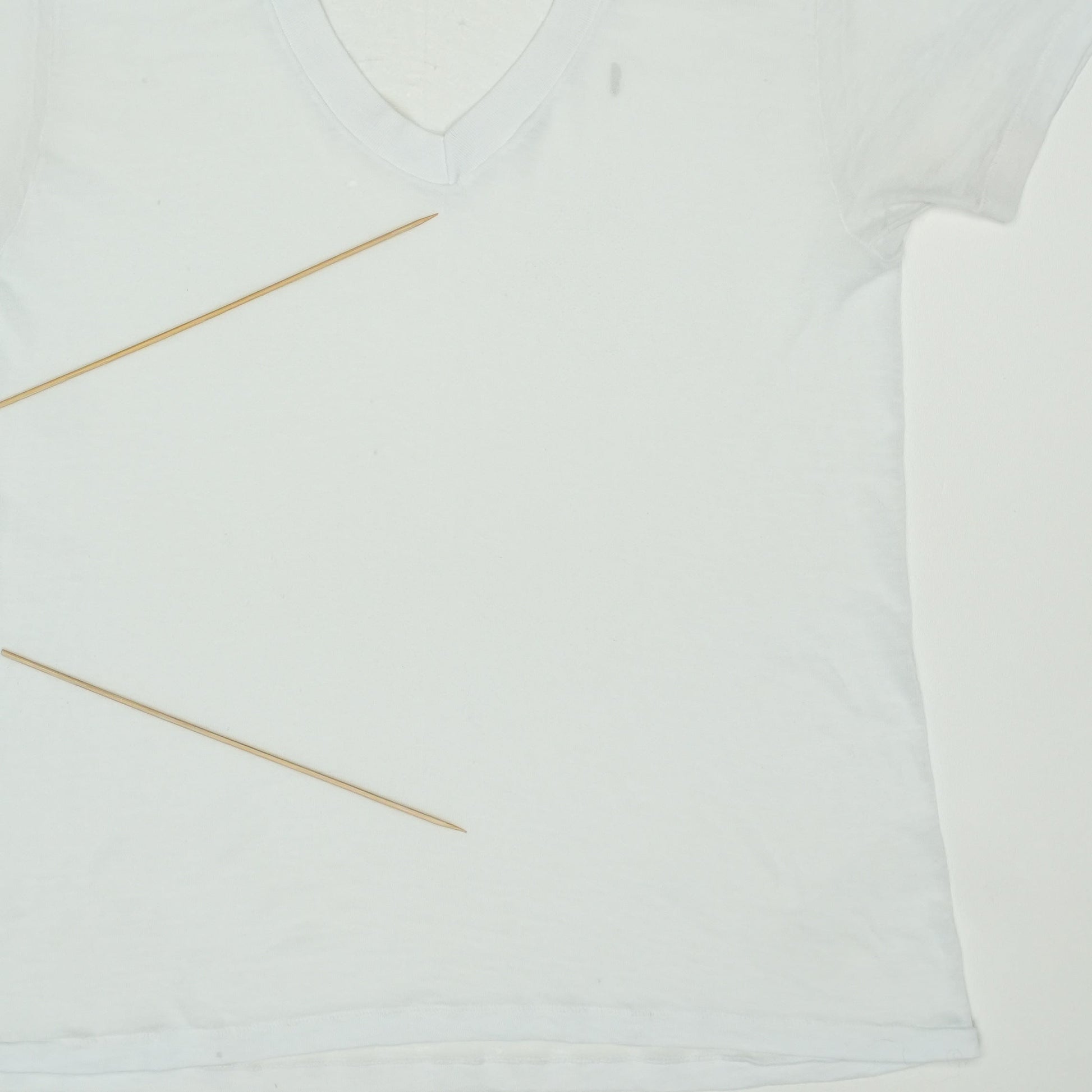 Original vintage 1980s Blank V Neck Shirt. This is a true vintage shirt, not a modern reproduction. Sizes vary so please use measurements for best idea on fit. No back graphics. Shirt is in worn condition, no holes, discoloration throughout. This shirt will arrive washed and ready to wear.