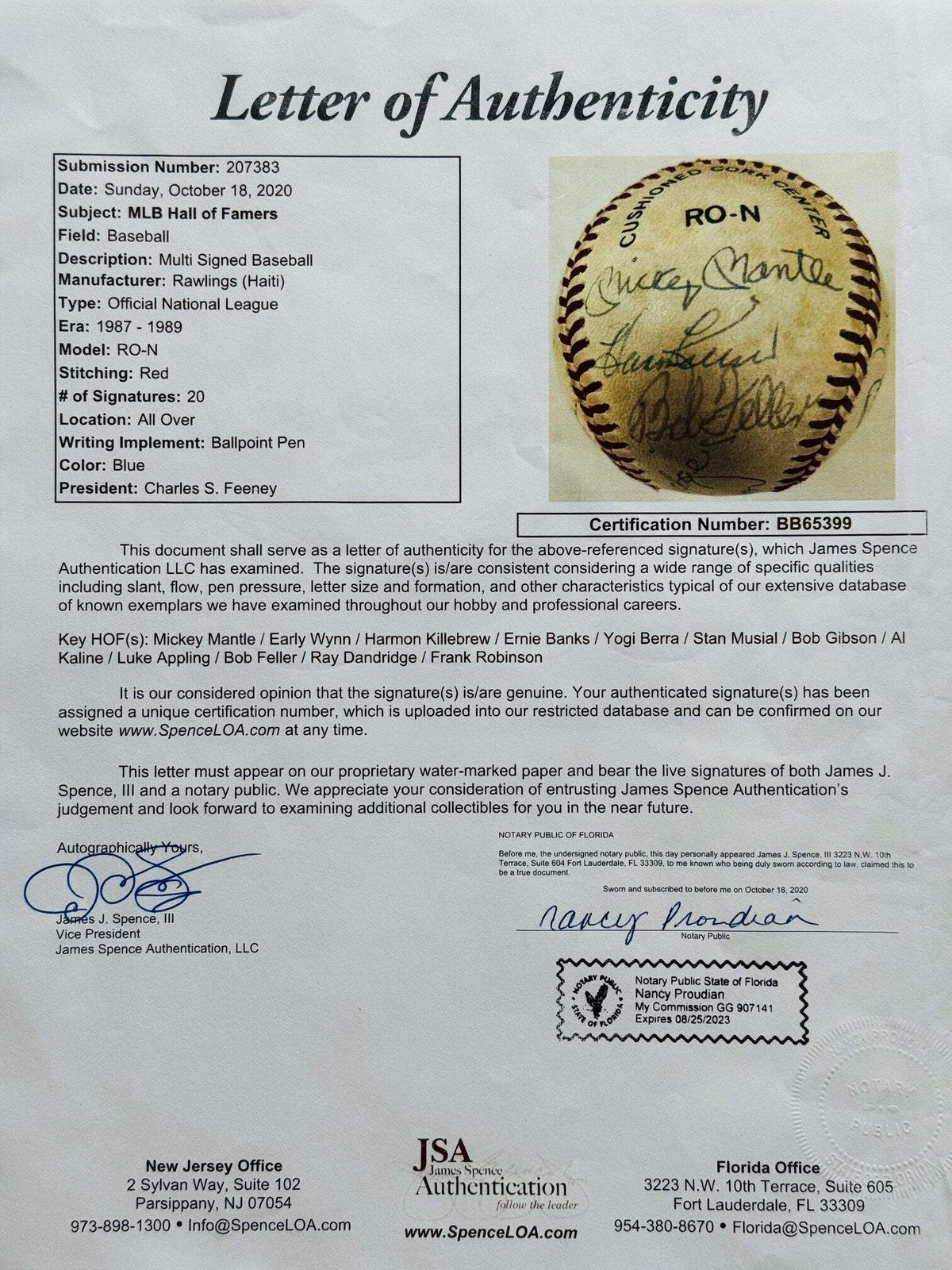 MLB Hall Of Famers Autographed Official Baseball with 20 signatures