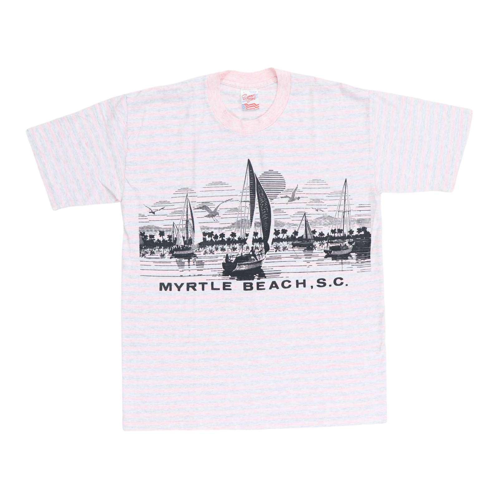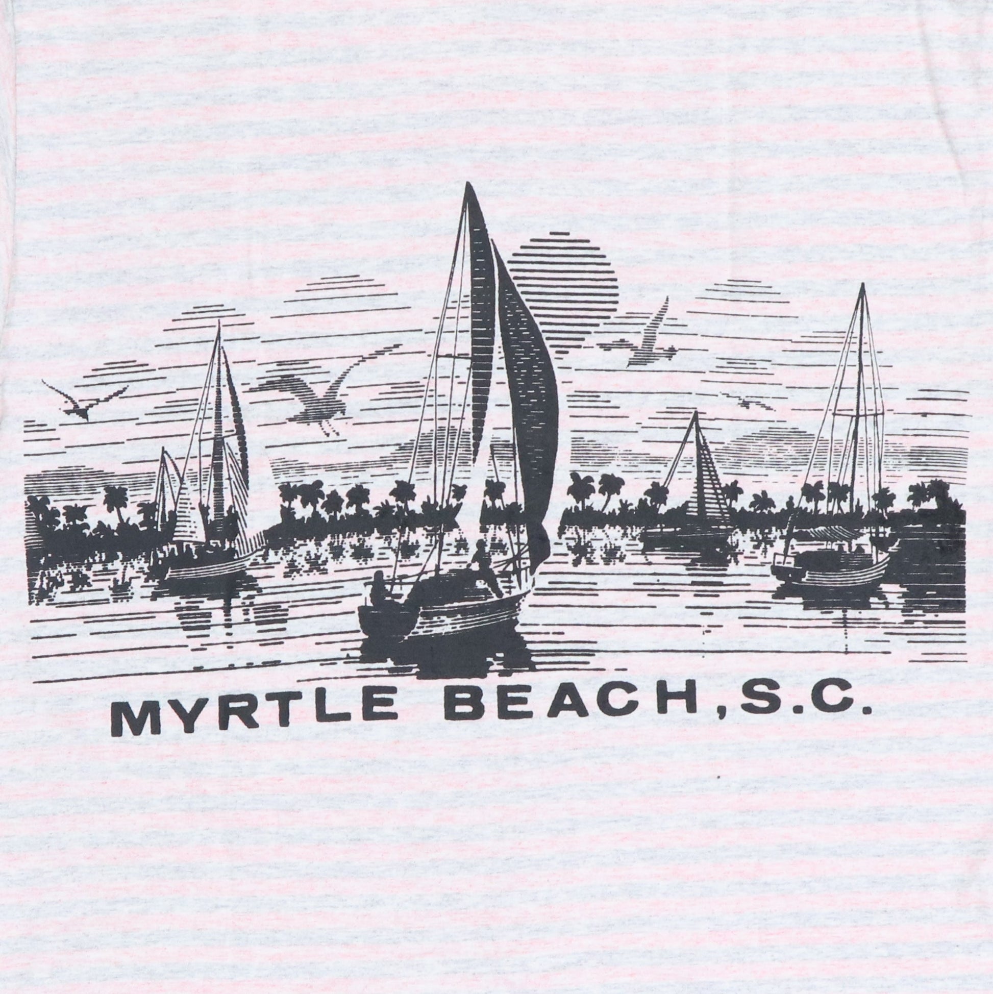 Original vintage 1980s Myrtle Beach Striped Shirt. This is a true vintage shirt, not a modern reproduction. Sizes vary so please use measurements for best idea on fit. Front and back graphics. Shirt is in good condition, no holes, no stains. This shirt will arrive washed and ready to wear.