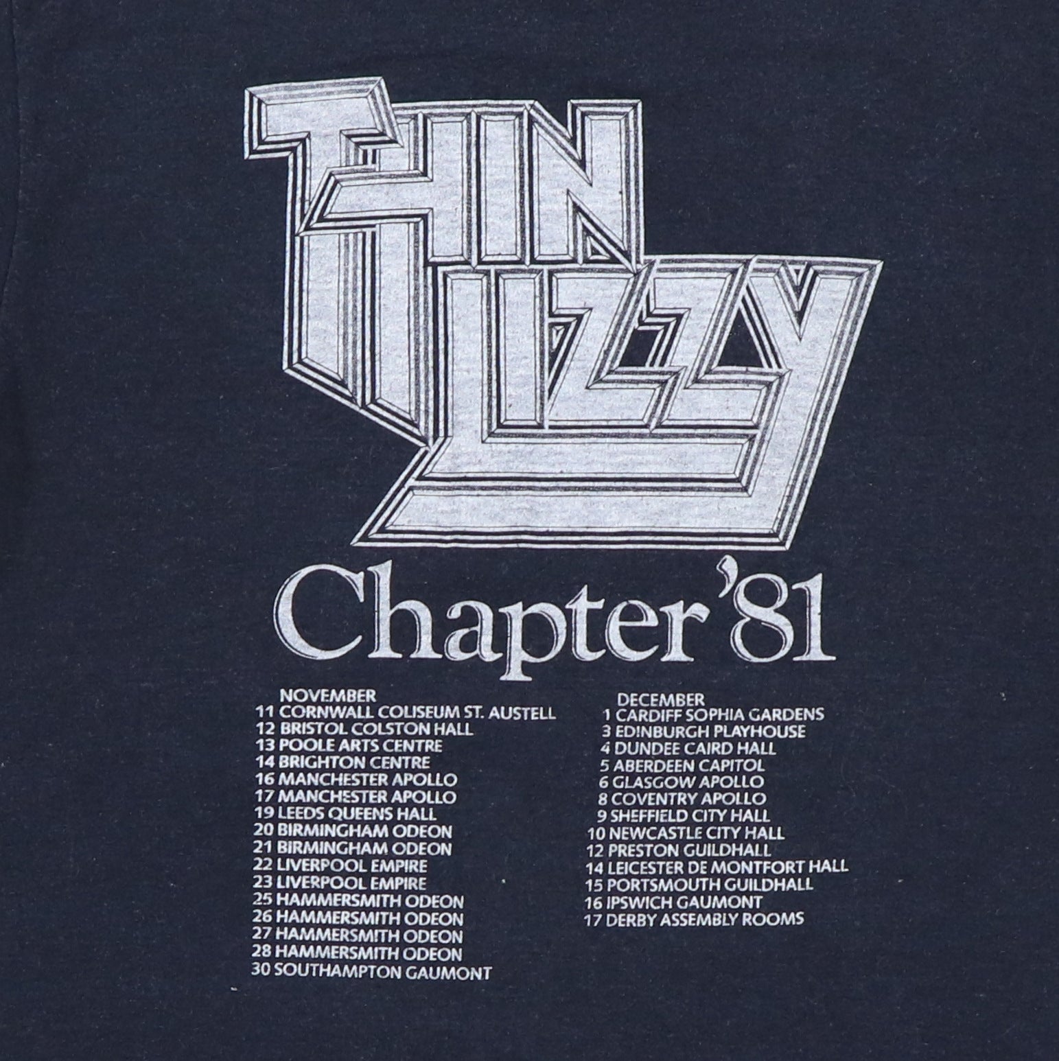 Original vintage 1981 Thin Lizzy Renegade Tour Shirt. This is a true vintage shirt, not a modern reproduction. Sizes vary so please use measurements for best idea on fit. Front and back graphics. Shirt is in excellent condition, no holes, no stains. This shirt will arrive washed and ready to wear.